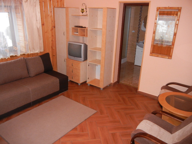 Das Haus verfügt über ein Schlafzimmer mit einer Küchenzeile, einen Aufenthaltsraum mit einem Kamin.