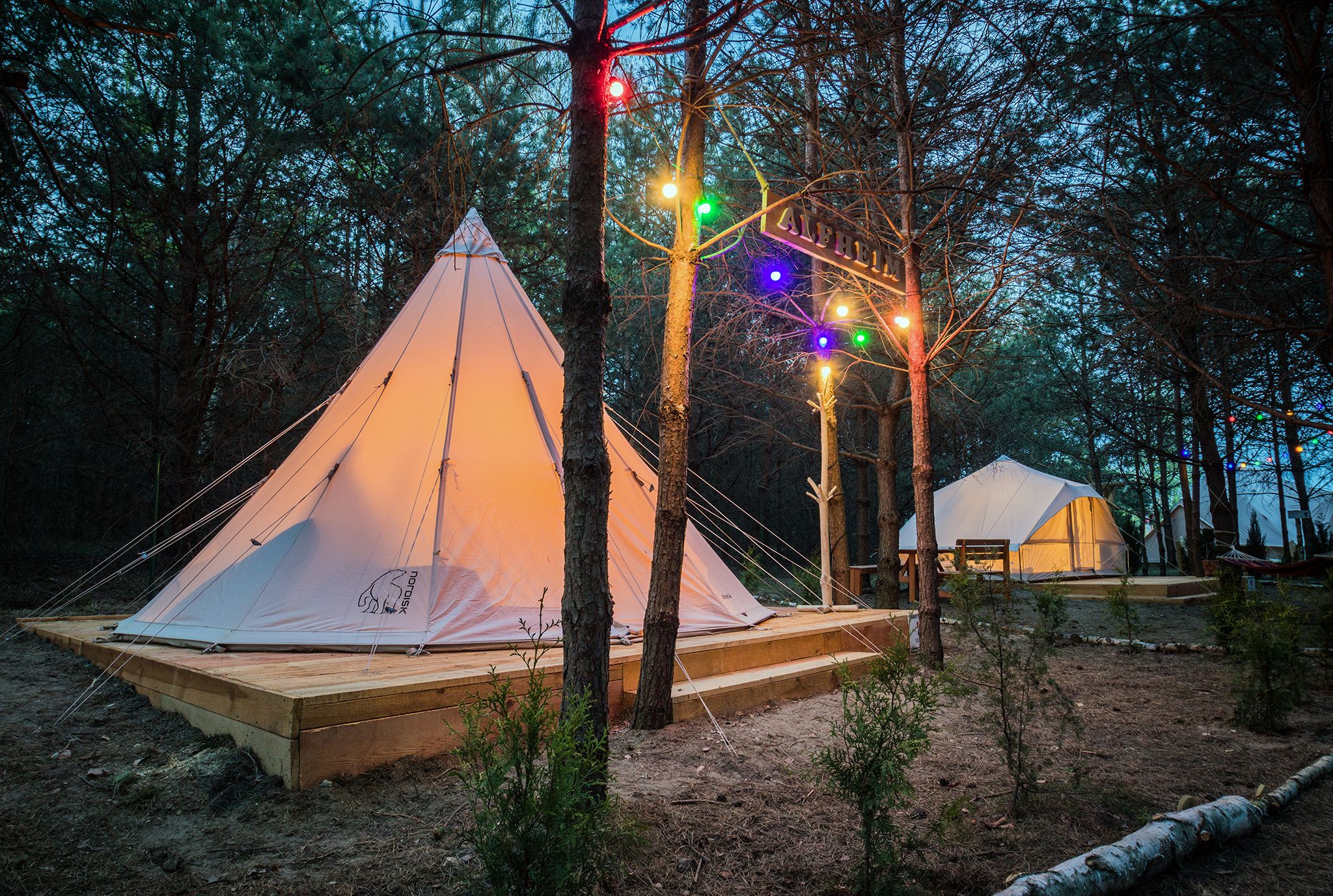 Wyobraź sobie bawełniany namiot o powierzchni 40 metrów kwadratowych rozstawiony w sosnowym zagajniku, który oferuje dwie niezależne, dwuosobowe sypialnie, salonik, wyposażenie hotelowe oraz ławy i huśtawkę na zewnątrz. Wyobraź sobie jak pijąc kawę czytasz ulubioną książkę oberwując dziecko na placu zabaw.