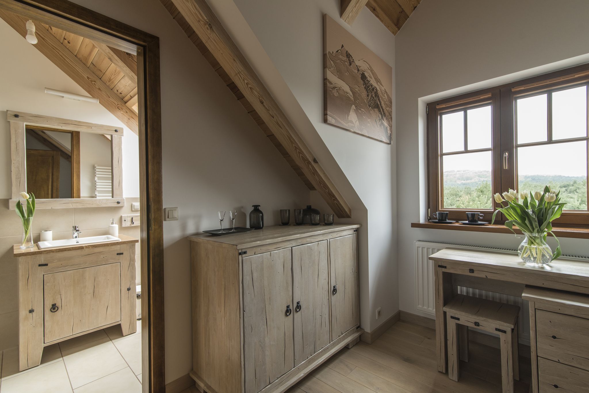 Do Waszej dyspozycji w „Małych Dolomitach” pozostaje 7 pokoi (dwu-, trzy- i czteroosobowych) łącznie dla 22 osób. Każdy z nich posiada własną, gustowną łazienkę. Istnieje możliwość łączenia części pokoi w większy apartament.