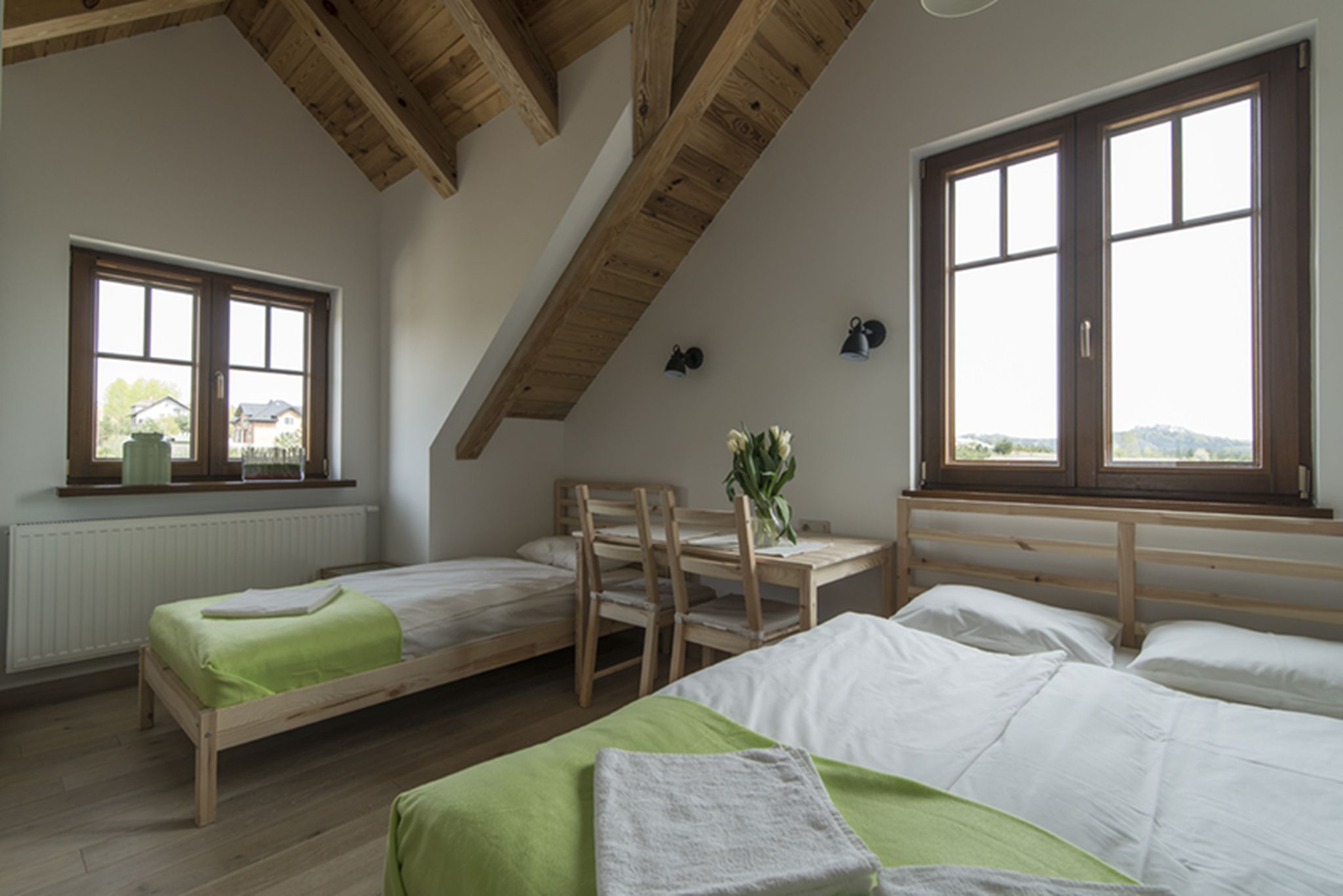 Nocleg w „Małych Dolomitach” daje prawdziwy odpoczynek… Niebo jest czarne, pełne gwiazd, nieskażone światłami miasta, panuje cisza i spokój. Czasem koło domu przemknie lis lub zając, albo podejdzie sarna czy dzik. W przytulnych, pachnących drewnem pokojach zapewniamy tylko dobry sen :) Zaś ranek obudzi Was gwarem mnóstwa ptaków trelujących i śpiewających w najróżniejszych tonacjach, a widok wzgórz z lasami i jurajskimi ostańcami obudzi w Was chęć ruchu i zmysł zdobywcy.