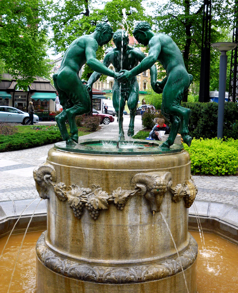 Gliwice, fontanna "Tańczące fauny" przed Urzędem Miasta, ponoć jeden z symboli {niedoszłego} Trójmiasta Górnośląskiego, foto Edward Wieczorek