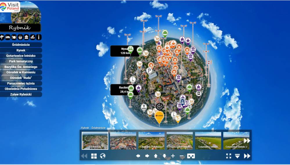 Czasami warto spojrzeć na coś "z góry". Teraz jest to możliwe dzięki współpracy miasta Rybnik z serwisem VisitPoland. Zobacz jak prezentuje sie Zalew w Rybniku, Park nad Nacyną lub ośrdoki rekreacyjne Kamień czy Ruda. Odwiedź rybnicki rynek bez wychodzenia z domu i zaplanuj swoją podróż do Rybnika już dziś! Aby popatrzeć na Rybnik z góry kliknij TUTAJ