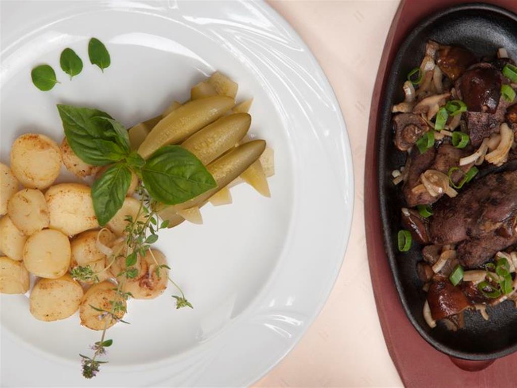 Wątróbka po oproszeniu mąką pieczona jest na oliwie, aż do zrumienienia. Podawana z posiekaną cebulką i jabłkiem na rozgrzanej patelni z dodatkiem masła. Dodatek stanowią opieczone ziemniaki i ogórki kiszone.