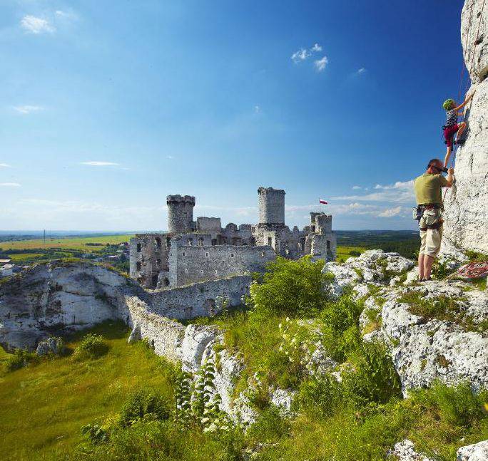Przy okazji wspinaczki warto zwiedzić zamek Ogrodzieniec: jego ruiny to główna atrakcja turystyczna w Podzamczu. Zamek pochodzi z XIV wieku i jest jednym z najpiękniejszych i największych zamków na Szlaku Orlich Gniazd. Można zwiedzać ruiny, wspinając się na wieże, z których rozciągają się malownicze widoki na okolicę. Dla tych podróżujących z dziećmi, polecamy odwiedzić Park Rozrywki z licznymi atrakcjami oraz Park Doświadczeń Fizycznych, gdzie poprzez interaktywne instalacje można poznać prawa fizyki. Okolica oferuje liczne szlaki turystyczne i rowerowe, które pozwalają na aktywne spędzanie czasu na świeżym powietrzu. Szlak Orlich Gniazd prowadzi przez malownicze tereny Jury Krakowsko-Częstochowskiej, łącząc wiele historycznych warowni i zamków. Malownicze otoczenie ruin zamku Ogrodzieniec dodają miejscu wyjątkowego klimatu, a duża liczba tras o różnych poziomach trudności sprawia, że każdy znajdzie coś dla siebie.