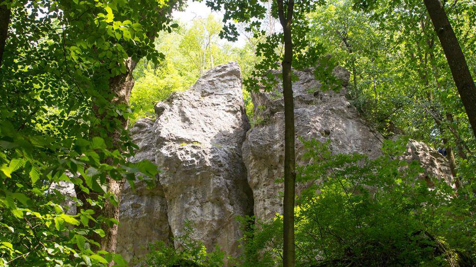 Rezerwat Zielona Góra, położony w pobliżu Olsztyna, to malownicze wzgórze zbudowane z wapienia, otoczone starym lasem dębowo-bukowym. Cała okolica tonie w lasach i zielonych pagórkach, tworząc idealne warunki do wspinaczki w cieniu drzew, szczególnie w upalne dni. Na terenie rezerwatu znajduje się sześć głównych formacji skalnych: Kowadło, Pod Kowadle, Płetwa, Zielona Góra, Diabelskie Schronisko oraz Północny Cyrk . Łącznie oferują one 47 dróg wspinaczkowych o różnorodnym stopniu trudności, od V do VI.4+ w skali Kurtyki. Trasy, które sięgają nawet 25 metrów, są dobrze zabezpieczone, a ich przebieg w większości prowadzi przez płyty i filary. Kilka świetnych rys umożliwia prowadzenie na własnej asekuracji. Skały w tym rejonie są lite i czyste, co dodatkowo zwiększa komfort wspinaczki.