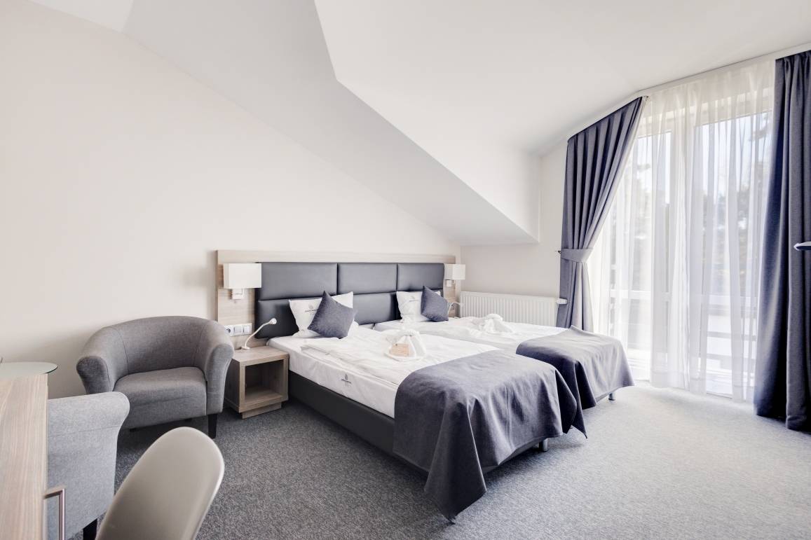 Hotel posiada 29 nowoczesnych pokoi, stylową restauracje, dwie sale konferencyjne, lobby, bar, siłownie, salę fitness. Oferuje gościom strefę Wellness z basenem, jacuzzi z hydromasażem, sauną suchą oraz z nowocześnie urządzoną grotą solną.