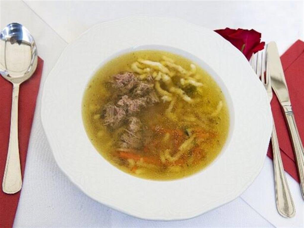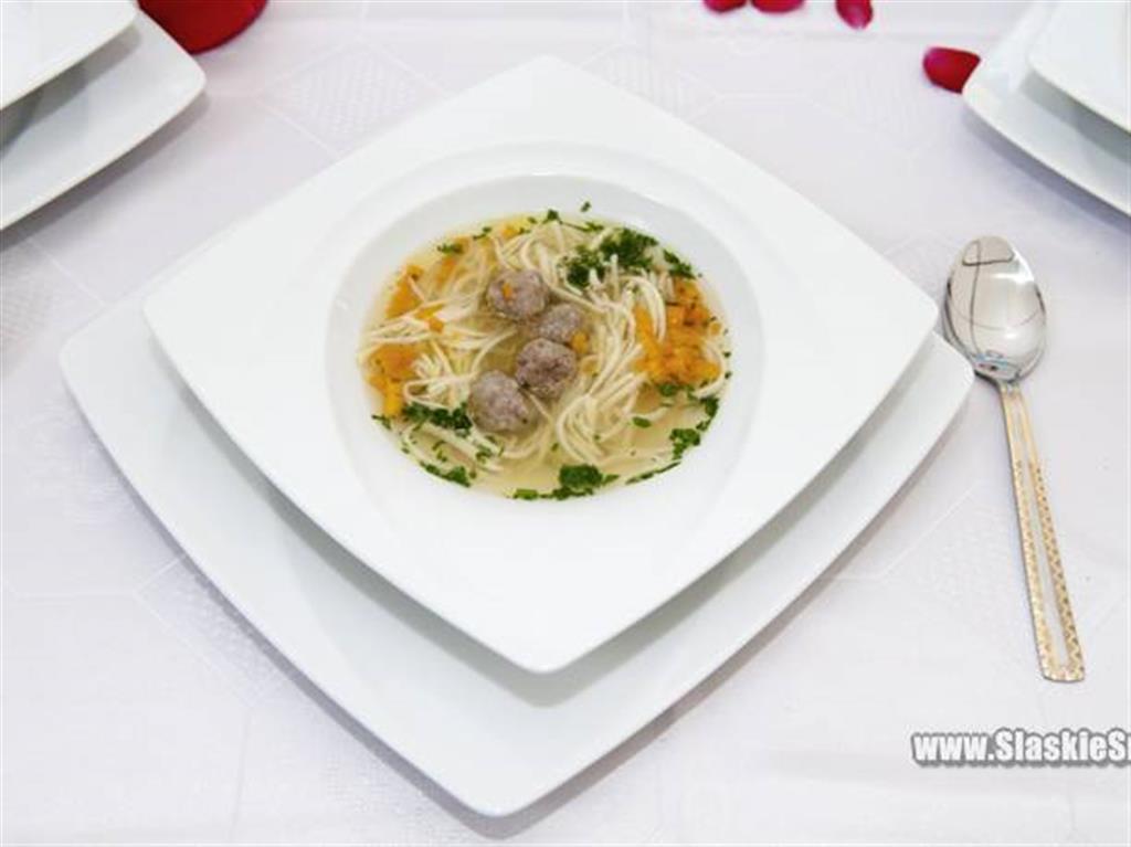 Brühe mit hausgemachten Nudeln und Leberknödel ist eine lokale Version der Brühe, die in Cieszyn Schlesien serviert wird. Die Suppe zeichnet sich durch Lebernudeln aus, die Sie in anderen Bereichen nicht finden.