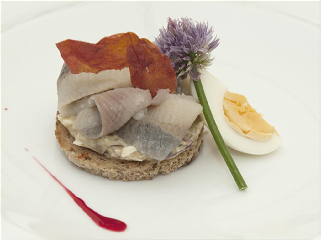 Filety namoczyć na 1-1,5 godz. w zimnym mleku , odcedzić. Śledzie obłożyć plastrami jednej sparzonej cebuli, liśćmi laurowymi i zielem angielskim, skropić sokiem z cytryny, zielonym pieprzem w zalewie, zalać olejem. Marynować co najmniej 6 godz. Filety osuszyć z marynaty, pokroić w drobną kostkę, wymieszać z drobno posiekaną pozostałą cebulą i koperkiem. Doprawić solą, pieprzem, sokiem z cytryny oraz musztardą. Ułożyć na talerzach porcje tatara, przykryć je półcentymetrową warstwą śmietany i udekorować koperkiem oraz cytryną.
