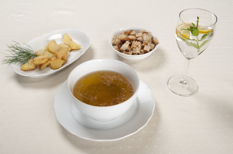 Najprostsza śląska zupa będąca wyrazem gospodarności gospodyń domowych. Podawana z podsmażonymi ziemniakami.