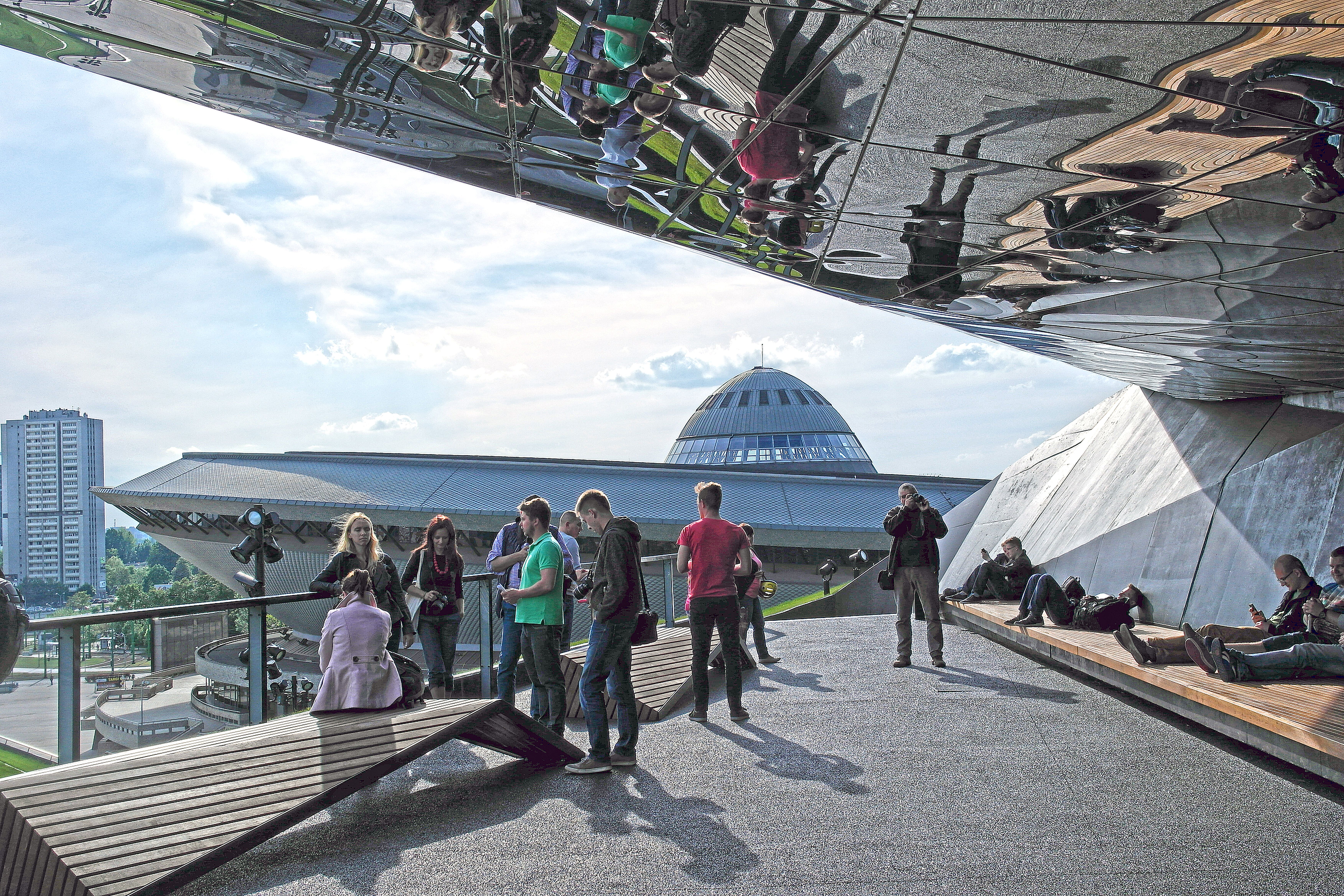 Culture Zone in Katowice is located between Spodek arena and new buildings which are the seat of the International Congress Center (MCK), The National Polish Radio Symphonic Orchestra (NOSPR) and the Silesian Museum. The location of the Space of Culture adapted the area of former coal mine "Katowice". There you can find, according to a characteristics for Upper Silesia urban designs and motifs, amazing buildings. Tourist can admire a fantastic view from the green roof of the MCK, and Hoist tower of the former pit shaft, on which a panoramic lift is mounted (the Silesian Museum).