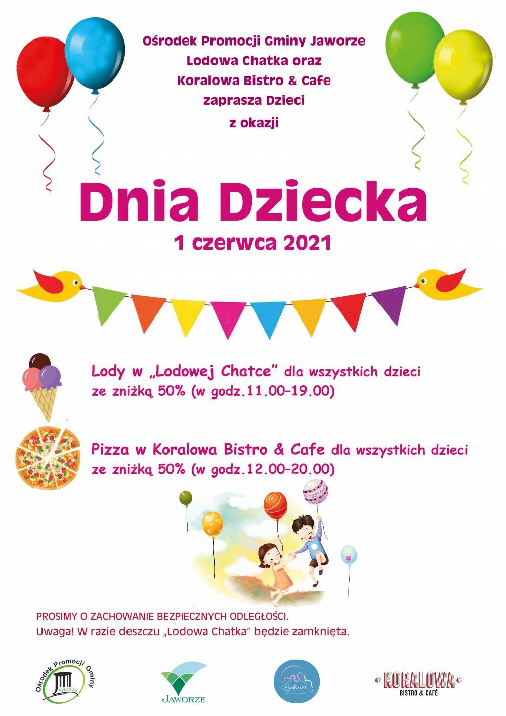 Ośrodek Promocji Gminy Jaworze (oraz Lodowa Chatka i Koralowa Bistro & Cafe) zaprasza na Dzień Dziecka, 1 czerwca w godz. 17.00 – 19.00 na plac obok Amfiteatru w Jaworzu