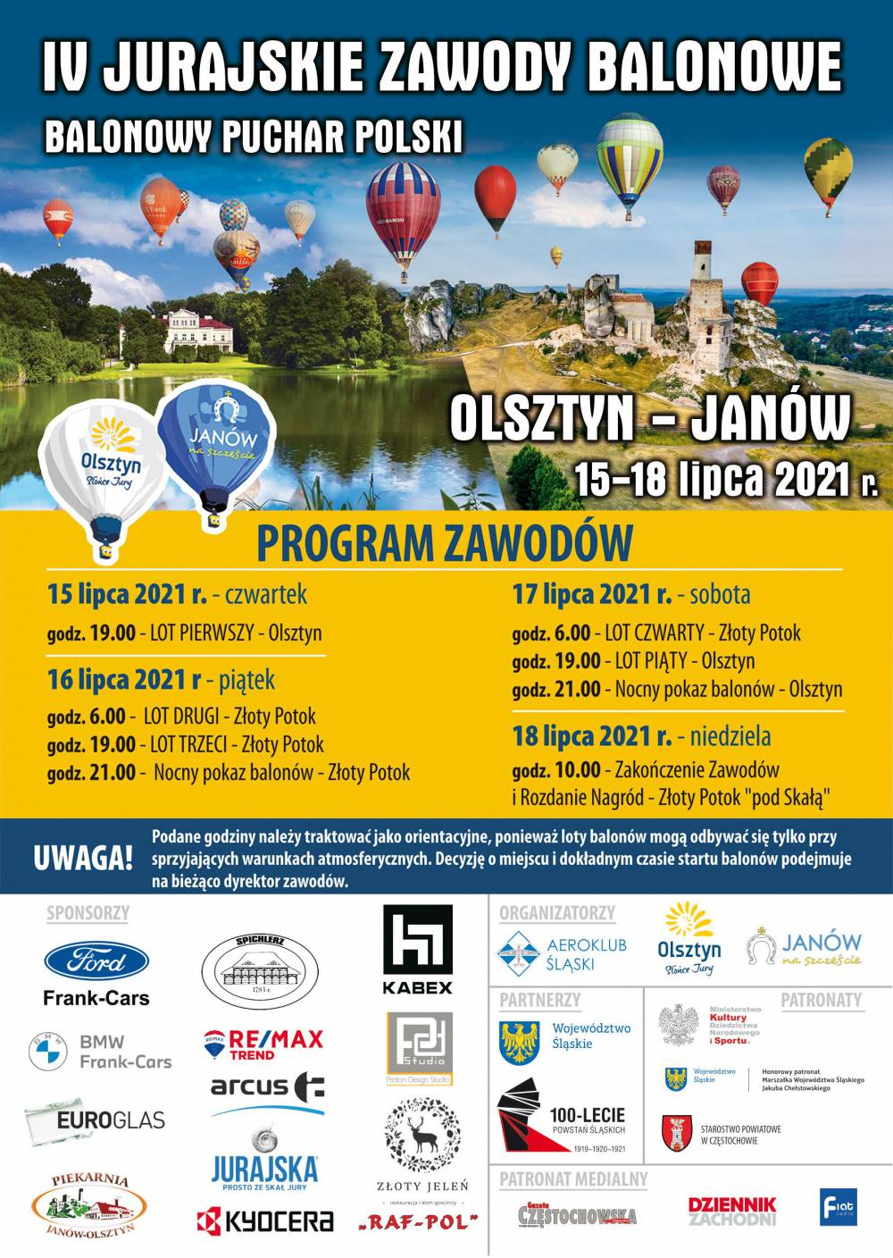 Gmina Olsztyn, Gmina Janów oraz Aeroklub Śląski zapraszają na IV Jurajskie Zawody Balonowe, w ramach których odbędzie się Balonowy Puchar Polski i Balonowe Mistrzostwa Polski Kobiet.