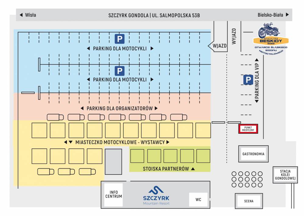 - godz. 10:00 - otwarcie miasteczka motocyklowego, prezentacja sprzętu, ubrań, akcesoriów motocyklowych na stoiskach promocyjnych - parking przy dolnej stacji kolei gondolowej, ul. Salmopolska 53 B