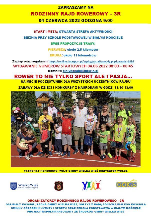 Zapraszamy na II Rodzinny Rajd Rowerowy - 3R do Białego Kościoła.