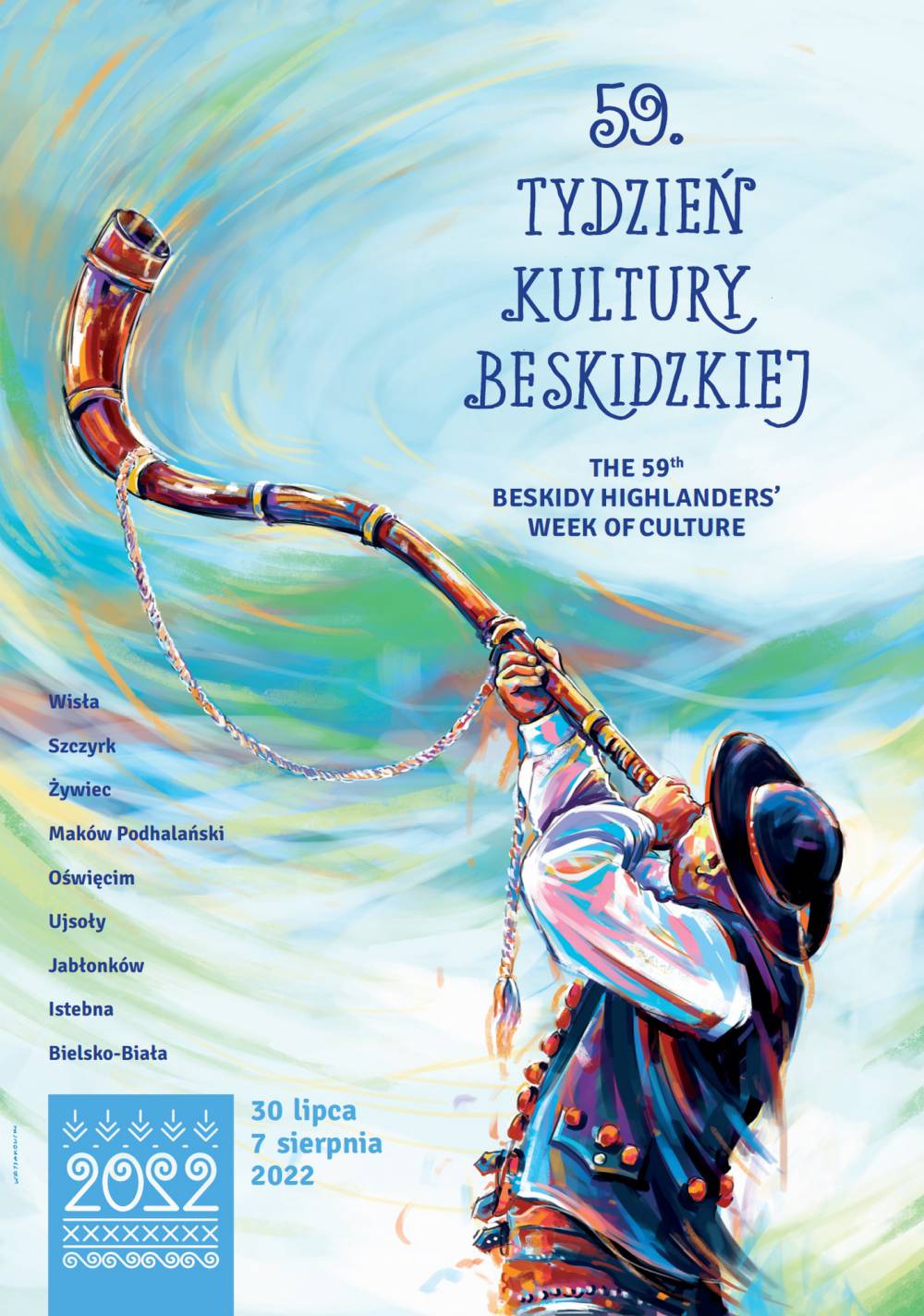 Zapraszamy na wielkie góralskie święto – 59. Tydzień Kultury Beskidzkiej, które opanuje Beskidy i okolice. Tydzień, jak wiadomo, jest najdłuższym tygodniem w roku i potrwa dziewięć dni – od 30 lipca do 7 sierpnia. Na plenerowych estradach w Wiśle, Szczyrku, Żywcu, Makowie Podhalańskim i w Oświęcimiu wystąpi około 90 zespołów folklorystycznych, w tym kilkanaście zagranicznych. Organizatorzy zapraszają też do Ujsół, Jabłonkowa i Istebnej.