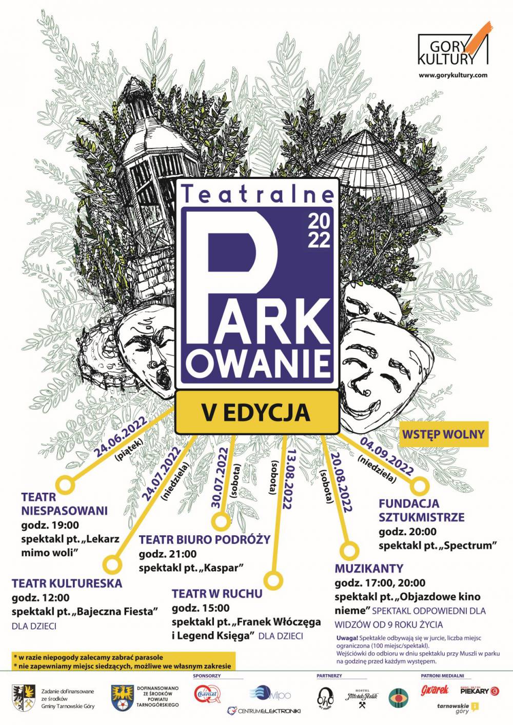 "Teatralne Parkowanie" to impreza, która od 2018 wykorzystuje przestrzeń Parku Miejskiego do prezentacji wartościowych plenerowych spektakli teatralnych zarówno z okolic jak i z całej Polski. Zaproszone grupy teatralne będą prezentowały swoje spektakle w letnie weekendy. Inicjatywa ta rozszerza ofertę kulturalną dla mieszkańców miasta Tarnowskie Góry.