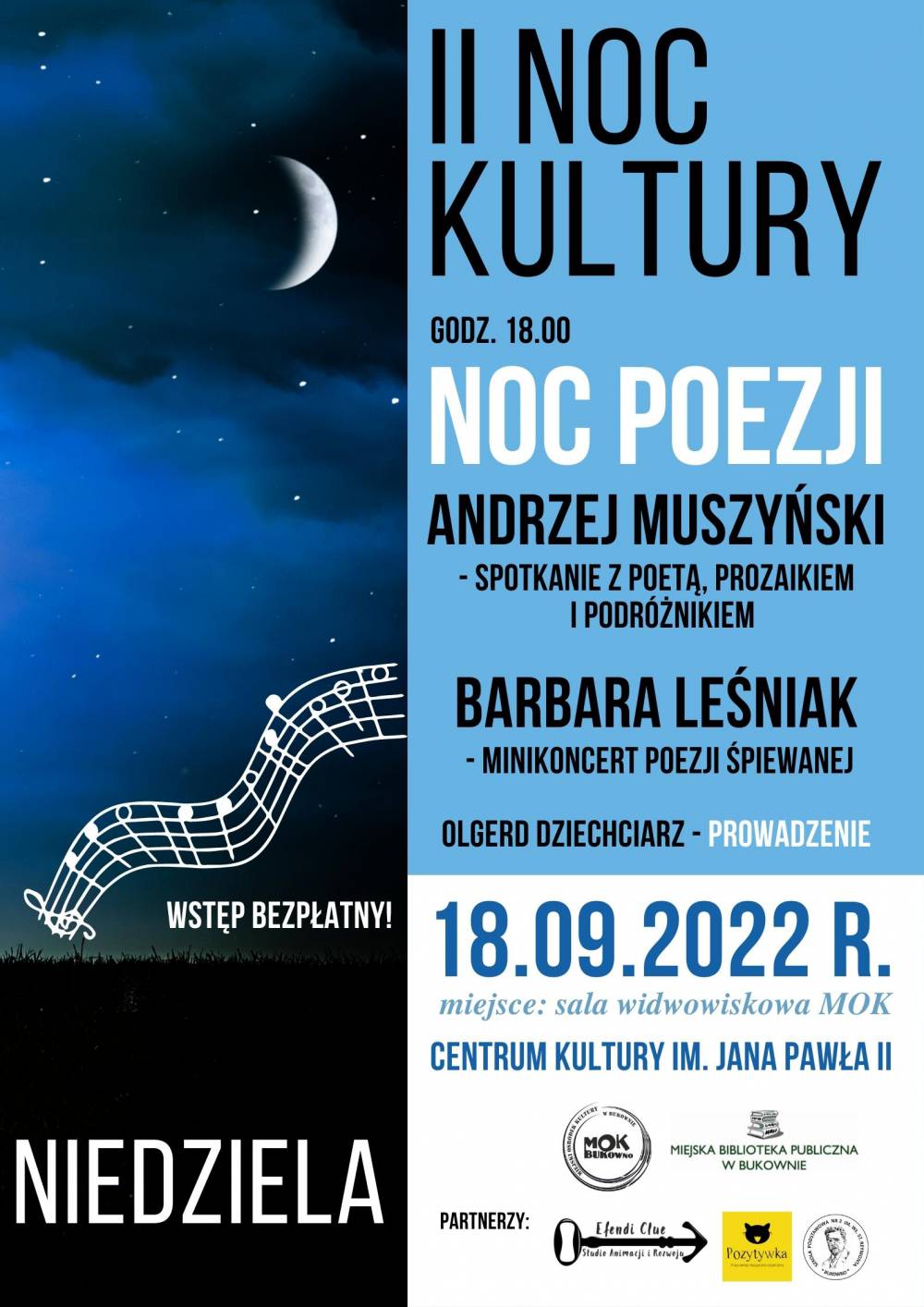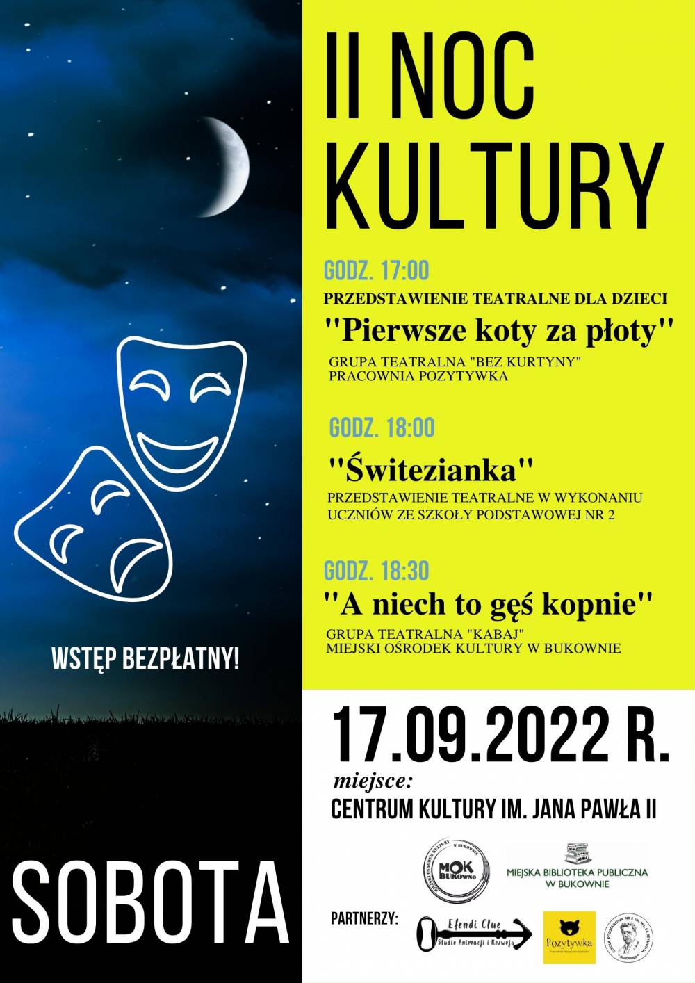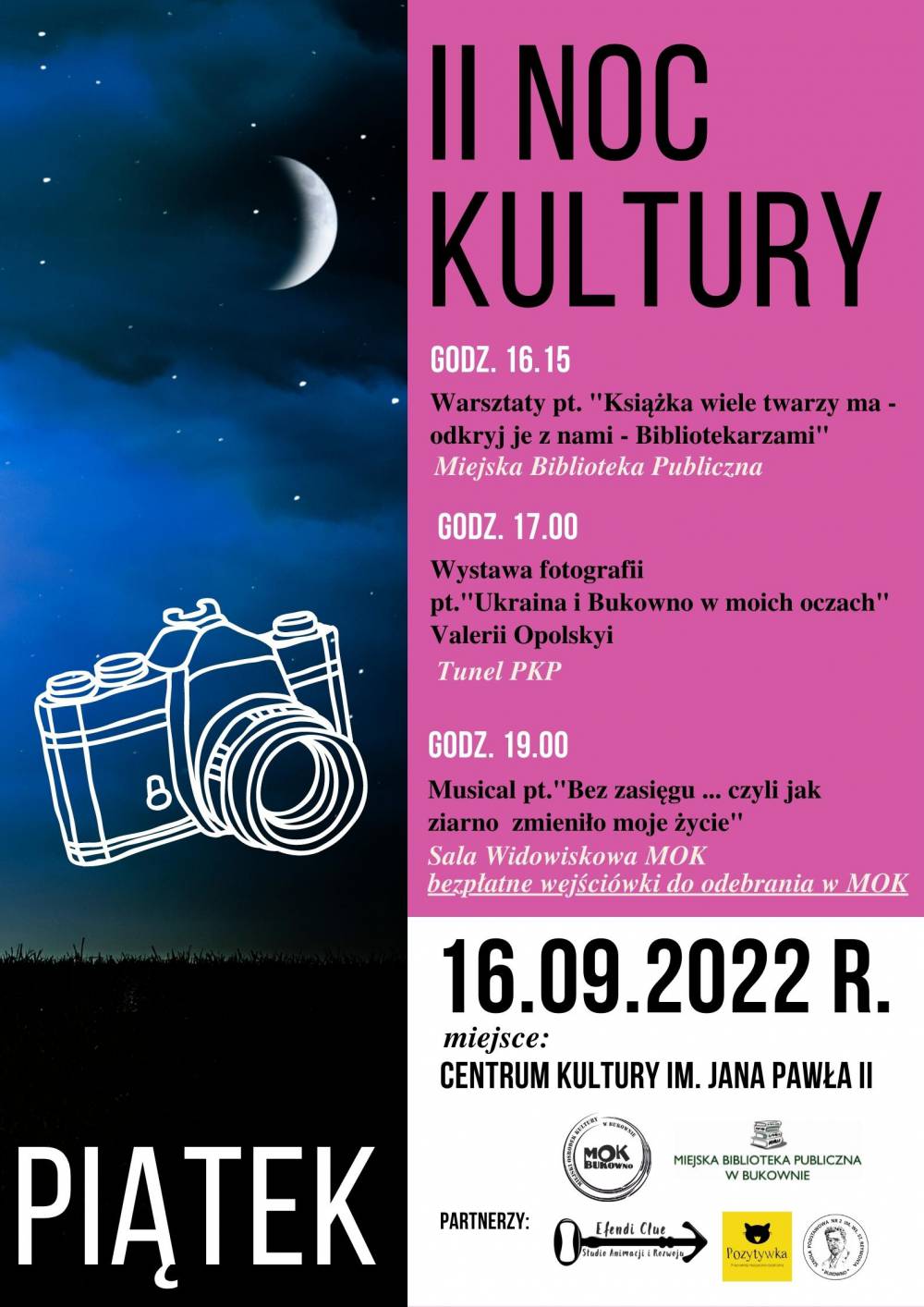 Miejski Ośrodek Kultury w Bukownie serdecznie zaprasza na II NOC KULTURY w Bukownie, która odbędzie się w dniach 16-18 września br.