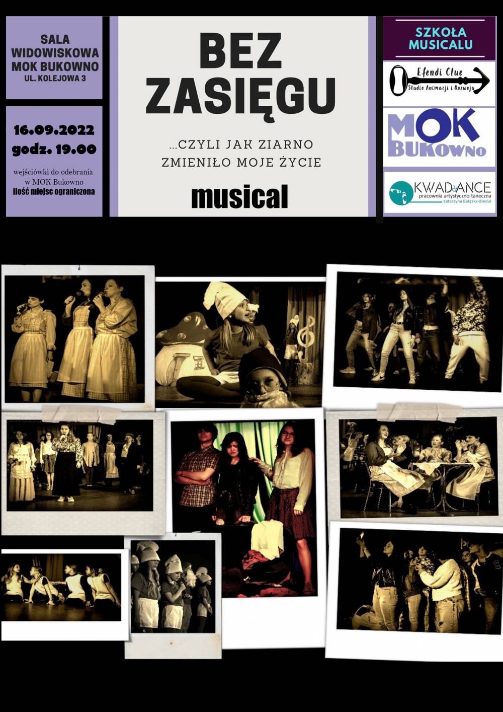 godz. 19.00 Musical pt. "Bez zasięgu... czyli jak ziarno zmieniło moje życie" - Sala widowiskowa MOK (bezpłatne wejściówki do odebrania w MOK).