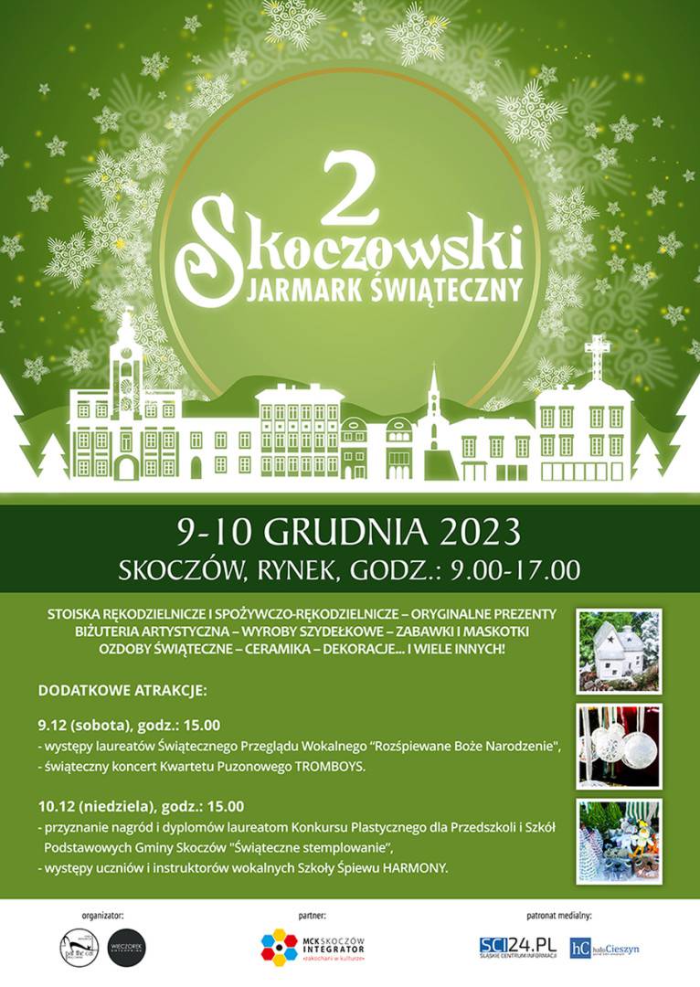9 i 10 grudnia na Rynku Skoczowa odbędzie się II Skoczowski Jarmark Świąteczny, podczas którego zaprezentują się rękodzielnicy i pracownie rękodzieła artystycznego z różnych części Polski. Na odwiedzających będą czekały m.in. oryginalne prezenty świąteczne, ceramika i biżuteria artystyczna, ozdoby, świąteczne dekoracje, ręcznie szyte zabawki, maskotki, makatki, torby oraz wiele innych. Nie zabraknie też czegoś pysznego na ząb. Będą sery, wędliny, kołacze, chałwy i baklawy, słodycze, pierniki, miody, dżemy… Z pewnością każdy odwiedzający znajdzie coś dla siebie!