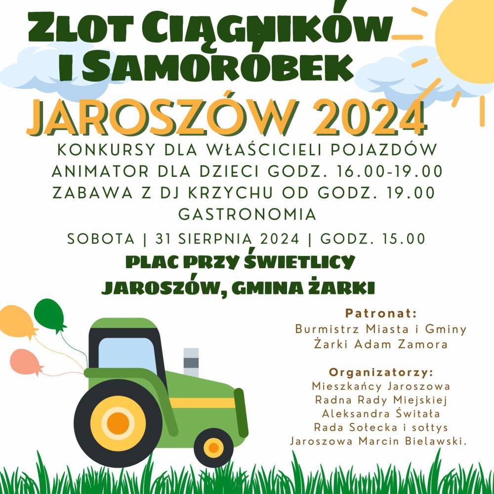 Serdecznie zapraszamy w imieniu organizatorów w dniu 31 sierpnia 2024, godz. 15.00 na Zlot Ciągników i Samoróbek przy świetlicy w Jaroszowie. Wstęp Wolny.