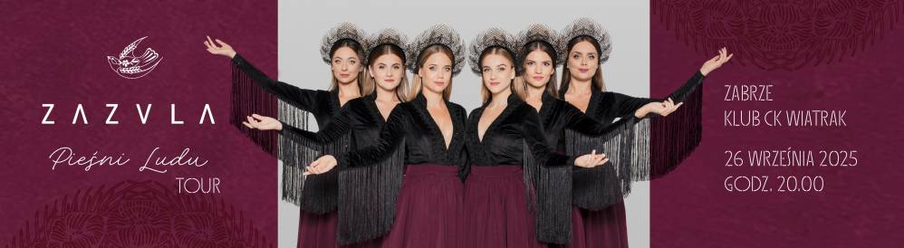W Klubie CK Wiatrak w Zabrzu, który odbędzie się koncert zespołu ZAZULA - 26 września 2025 r. o godz. 20.00.
