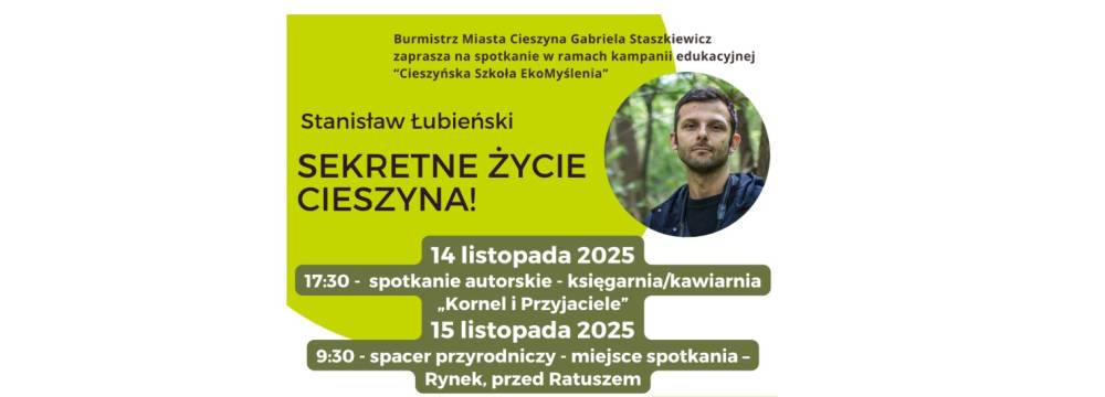 Burmistrz Miasta Cieszyna Gabriela Staszkiewicz zaprasza na kolejne spotkanie w ramach kampanii edukacyjnej "Cieszyńska Szkoła EkoMyślenia": Sekretne życie Cieszyna!