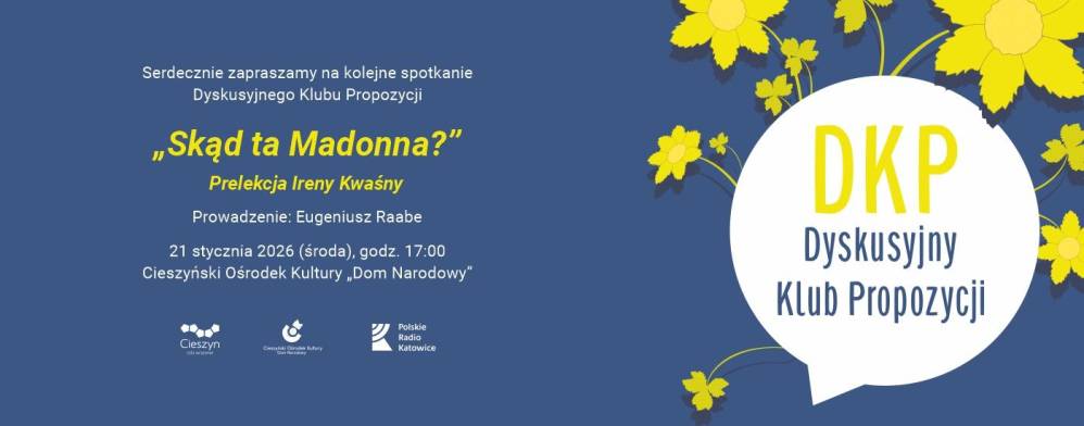 Cieszyński Ośrodek Kultury "Dom Narodowy" zaprasza na comiesięczne spotkania Dyskusyjnego Klubu Propozycji! Pierwsza odsłona cyklu w 2026 roku odbędzie się w środę 21 stycznia o godzinie 17:00 w Domu Narodowym. Irena Kwaśny wygłosi prelekcję pod tytułem "Skąd ta Madonna?".