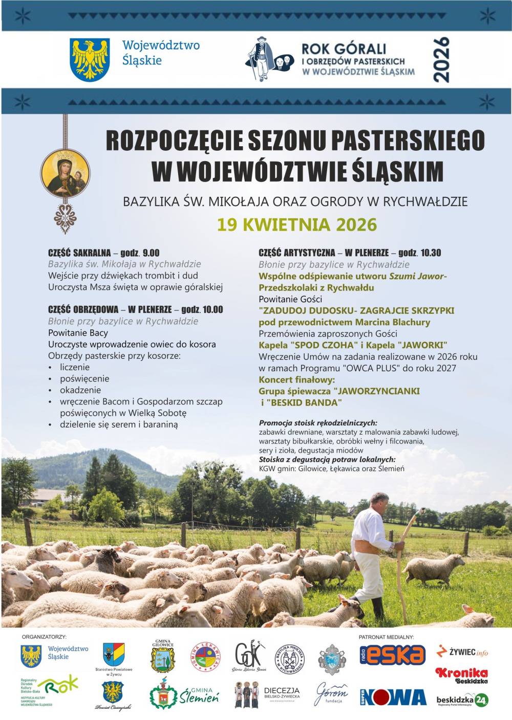 W najbliższą niedzielę, 19 kwietnia, w Rychwałdzie odbędzie się uroczyste Rozpoczęcie Sezonu Pasterskiego, które jednocześnie zainauguruje Rok Górali i Obrzędów Pasterskich w województwie śląskim. To szczególny moment w roku, gdy na beskidzkie hale wyruszają pierwsze stada owiec prowadzone przez baców i juhasów, rozpoczynając kolejny sezon wypasu.