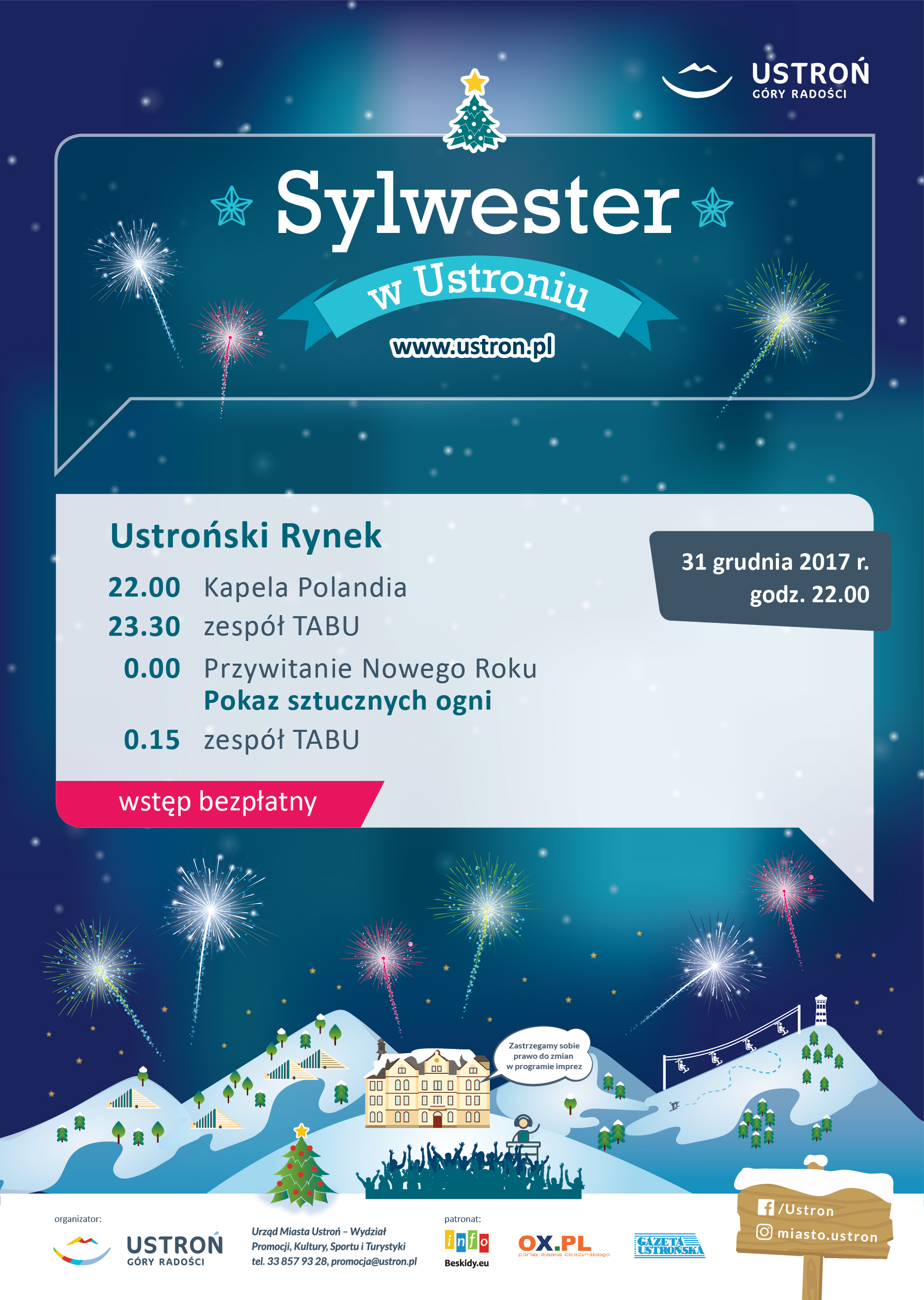 Serdecznie zapraszamy na zabawę sylwestrową na ustrońskim rynku. W tym roku oczekiwanie na Nowy Rok umili kapela POLANDIA, a gwiazdą sylwestrowej nocy będzie zespół TABU.