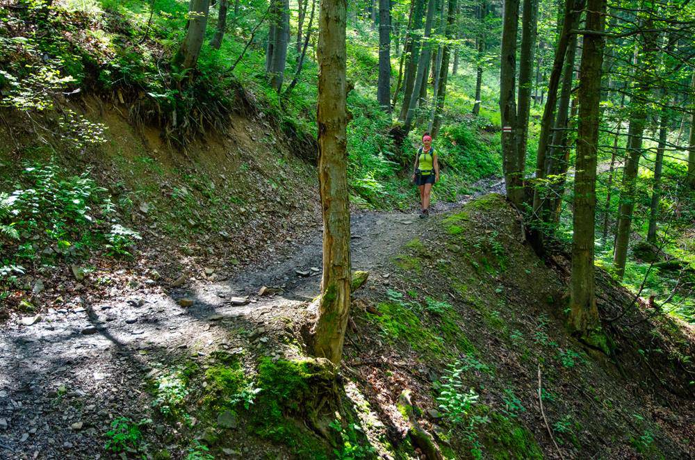 Obniżać się będziemy ścieżką spacerową, która w górnej partii jest mocno zarośnięta, później prowadzi lasem oraz kamienistym zboczem. Na mapie oznaczona jest jako szlak czerwony, w terenie natomiast występuje kwadratowe oznakowanie ścieżki spacerowej. Owa ścieżka jest rzadko uczęszczana, więc jest to świetna opcja dla turystów, którzy szukają w górach spokoju i mało uczęszczanych traktów.
