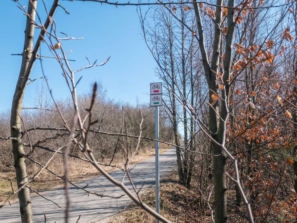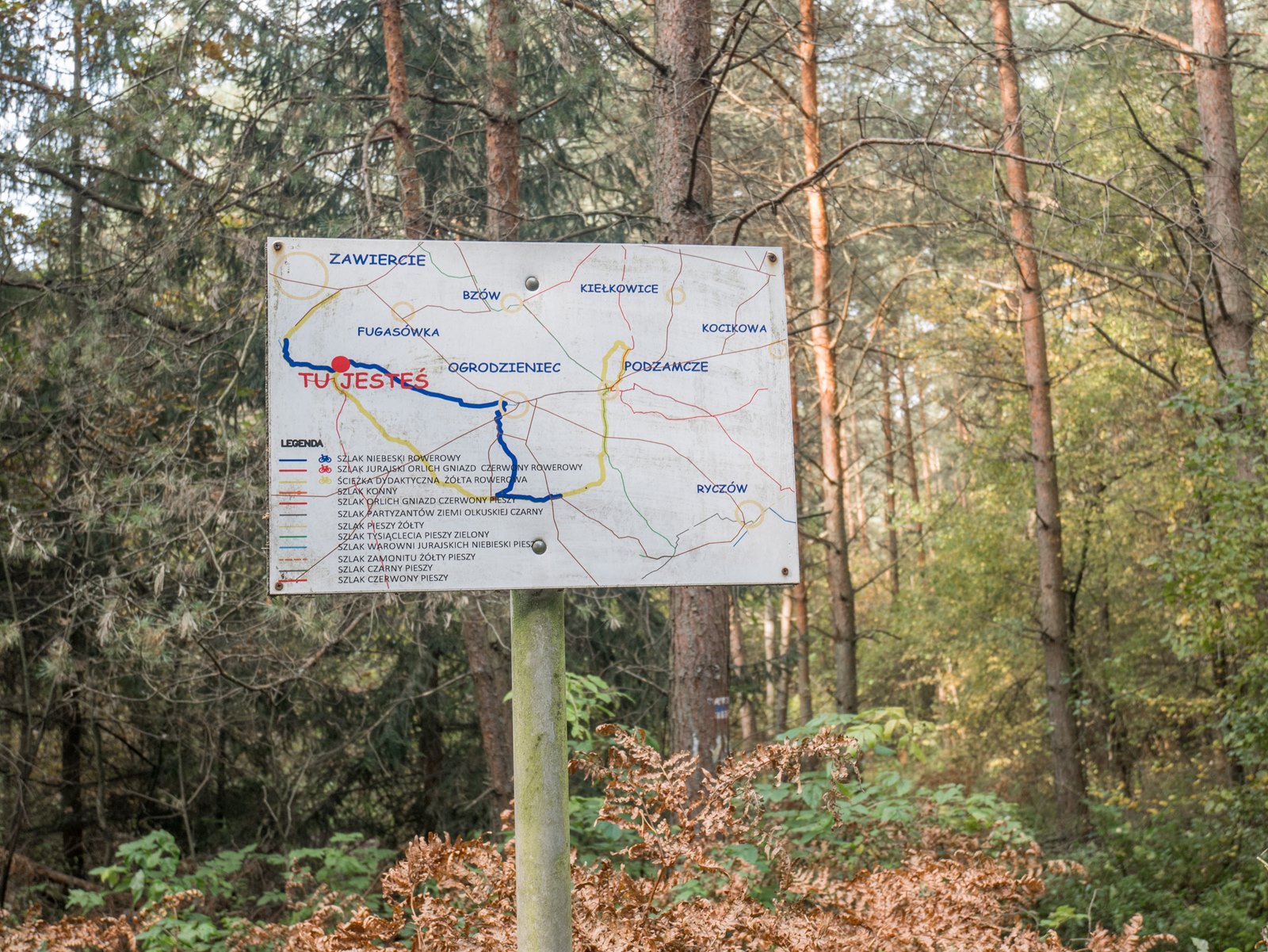 Szlak rowerowy o długości 10 km prowadzi z Zawiercia do Ogrodzieńca. Oznakowany jest kolorem niebieskim, ale rowerzyści mogą mieć spore problemy z właściwą nawigacją po szlaku, gdyż znaków brakuje zwłaszcza w lasach. Niestety szlak jest słabo przygotowany, a odcinki gruntowe, które stanowią 71%, są momentami nieprzejezdne ze względu na błoto, korzenie lub piach.