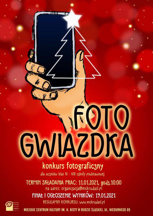 Finał konkursu i ogłoszenie wyników - 19 stycznia 2021 r. - prace uczestników zostaną zaprezentowane wyłącznie w wersji cyfrowej na stronie www.mckrudasl.pl oraz na fanpage'u MCK.