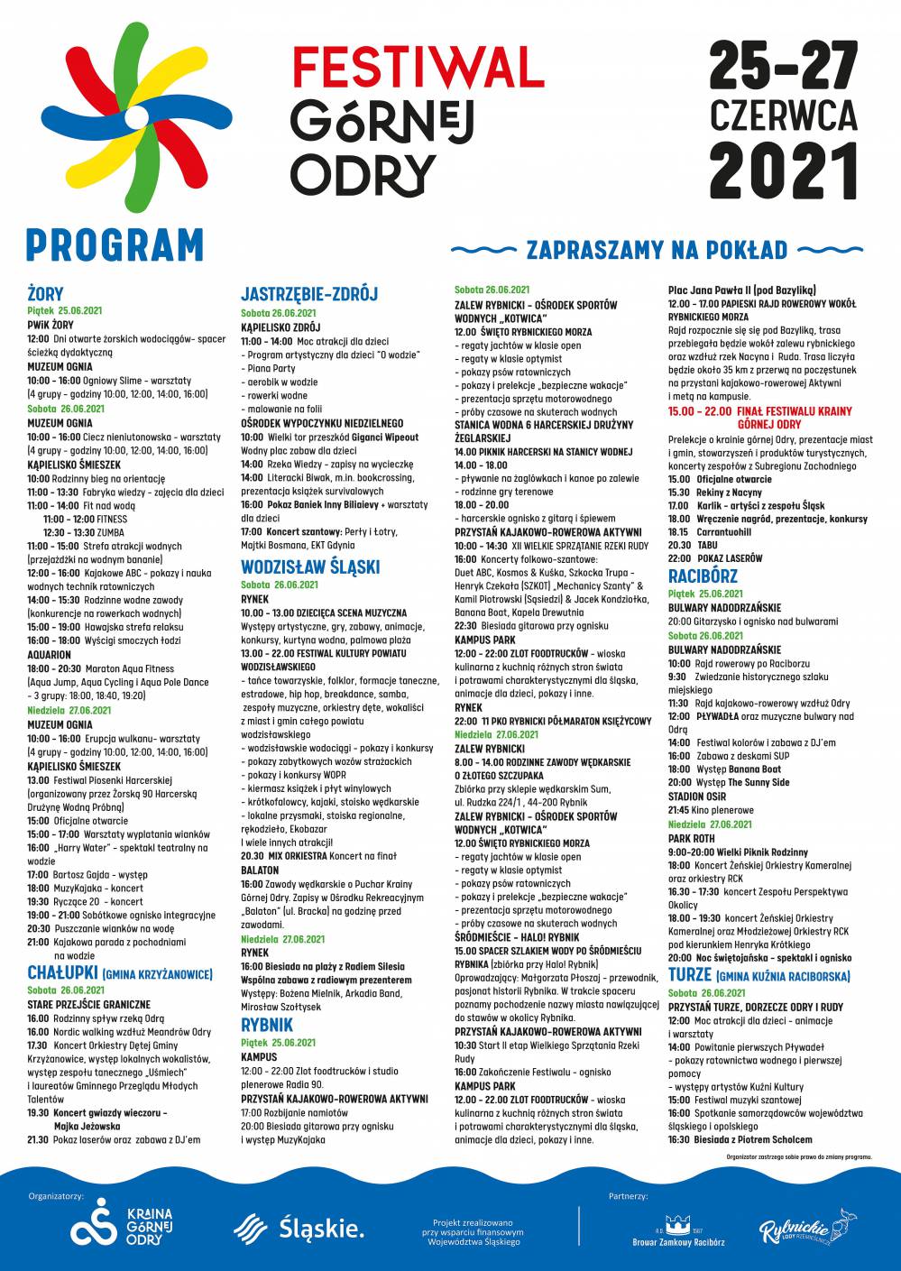 Kraina Górnej Odry - to  wyjątkowy obszar w południowo-zachodniej części województwa śląskiego, na pograniczu z Czechami i województwem opolskim.W tym roku ta najmłodsza marka turystyczna regionu obchodzić będzie swoje święto. Festiwal Górnej Odry, bo o nim mowa - to trzydniowe wydarzenie pod względem atrakcyjności i zasięgu stawiana w szeregu z Juromanią - Świętem Jury Krakowsko-Częstochowskiej czy Industriadą - Świętem Szlaku Zabytków Techniki. Festiwal Górnej Odry - to pełne 3 dni atrakcji dla aktywnych, rodzin i znajomych w wyjątkowych lokalizacjach od Raciborza przez Rybnik aż po Jastrzębie - Zdrój. A to nie wszystkie miejsca! Zobaczcie co będzie się działo!