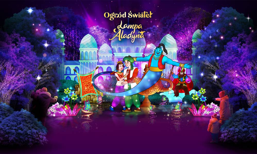 Na świeżym powietrzu, w otoczeniu 26 hektarów parku i jeziora, czekać będzie na zwiedzających kilkadziesiąt instalacji świetlnych, atrakcji multimedialnych, pokazy laserowe wraz z pełną oprawą dźwiękową oraz videomappingi. Podczas zwiedzania wystawy dostępnych będzie wiele z dotychczasowych zjeżdżalni, karuzeli i innych atrakcji Legendii, takich jak Jama Bazyliszka z rura parkiem, Gaj Urwisów, diabelski młyn Legendia Flower, Tea Cups, Magical Lake Expedition, Royal Ballroom oraz wybrane atrakcje dziecięce. Organizator postanowił, niczym Dżin, spełnić życzenia nie tylko tych najmłodszych. Każdy ma szansę wyruszyć w podróż opowiedzianą światłem i poczuć się jak bohater historii Aladyna - wystarczy przekroczyć magiczną bramę Ogrodu Świateł w Chorzowie, by już znaleźć się pod baldachimem orientalnych lampionów w otoczeniu glinianych dzbanów na jednej z arabskich ulic. Zwiedzający, krocząc przez kolejne etapy historii Aladyna, będą mogli podziwiać ogromne instalacje świetlne przedstawiające przygody bohatera z Dżinem, z piękną Jasminą, czy spotkać gwardię ogromnych strażników Sułtana, stojących na straży 30-metrowego tunelu świetlnego oraz odwiedzić 12-metrową Jaskinię Cudów w kształcie węża.