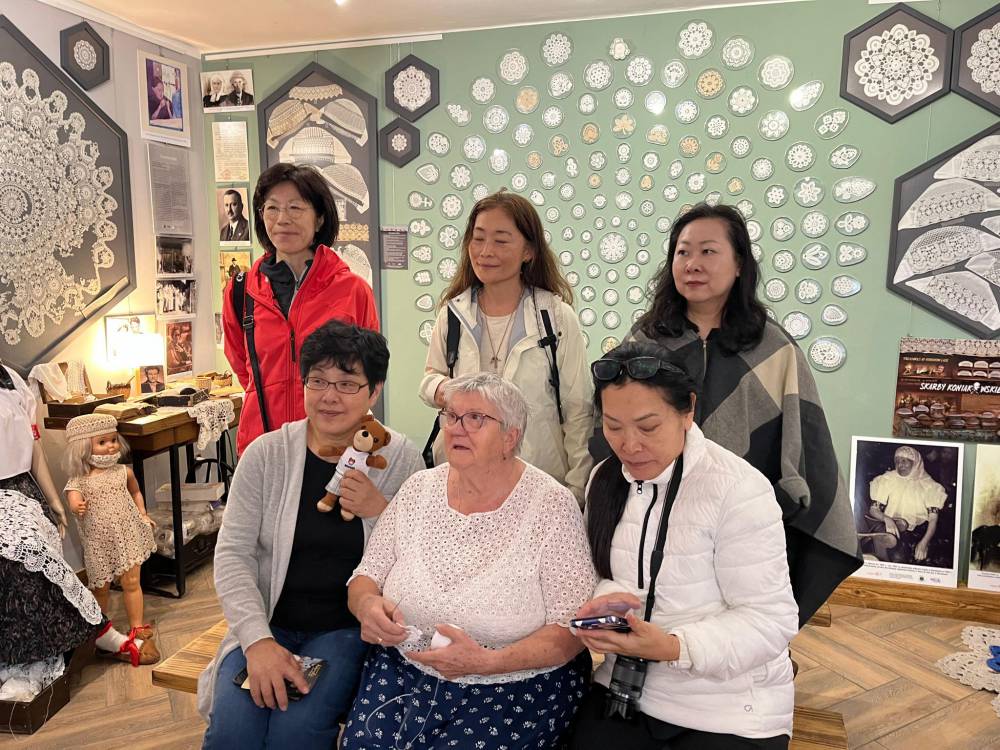 Redaktorki zaczęły swą podróż w Koniakowie - najwyżej położonej wiosce województwa śląskiego, na ponad 800 m n.p.m., gdzie na górze Ochodzita przebiega Europejski Dział Wodny (wody płyną z jednej strony do Morza Bałtyckiego, a z drugiej do Czarnego). Ta malowniczo położona beskidzka wieś słynna jest na całym świecie z wyrabianych ręcznie koronek koniakowskich. Czynność ta, określana mianem heklowania, wpisana jest na krajową listę niematerialnego dziedzictwa kulturowego. Nie mogło zatem w programie zabraknąć odwiedzenia przez Panie Muzeum oraz Centrum Koronki Koniakowskiej, gdzie poznały historię i obecne działania na rzecz zachowania tego unikatowego dziedzictwa. Wizyta połączona była z pokazem i nauką szydełkowania, prowadzoną przez Panią Sabinę Waszut - koronczarkę, a Pani Lucyna Ligocka-Kohut –prezes fundacji Koronki Koniakowskie oraz Centrum Koronki Koniakowskiej poprowadziłą prelekcję na temat koronek. Jako ciekawostkę można dodać, że Koronki z Koniakowa trafiły na światowe pokazy mody dzięki japońskiej projektantce mody - Rei Kawakubo, która wykorzystała je w sukni ślubnej zaprezentowanej na Paris Fashion Week. Kolejnym punktem programu było Centrum Pasterskie w Koniakowie, gdzie podczas zwiedzania zagrody edukacyjnej można przyjrzeć się z bliska owieczkom i kozom. Następnie Pan Józef Michałek - znawca kultury pasterskiej i góralszczyzny przybliżył historię pasterstwa, wpisania oscypka na europejską listę produktu regionalnego oraz informacje na temat kultury pasterskiej Karpat. Wizyta naturalnie zwieńczona była degustacją regionalnych serów.