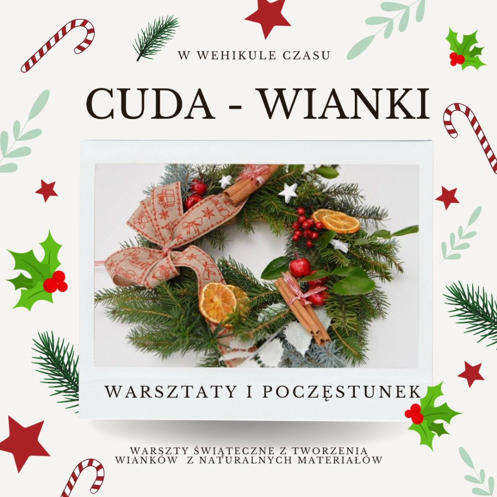- Wytwarzanie świątecznych wianków z naturalnych roślin, pachnących lasem, wprowadzających do wnętrza świąteczna atmosferę, udekorowanych według własnego upodobania, warsztaty połączone ze świątecznym poczęstunkiem, dla dzieci od 7 lat. Cena:  55 zł/os.