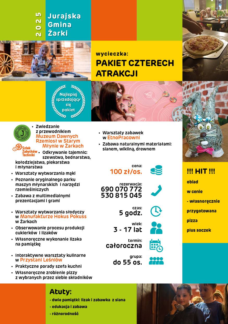 W Gminie Żarki szczególną uwagę zwracamy na turystykę edukacyjną, łączącą edukację, zabawę i przygodę. Wśród atrakcji znajdują się miejsca dziedzictwa kulturowego, interaktywne muzea, zagrody edukacyjne oraz warsztaty twórcze. Każda z wycieczek to nie tylko zwiedzanie, ale i aktywna nauka w formie zabawy.