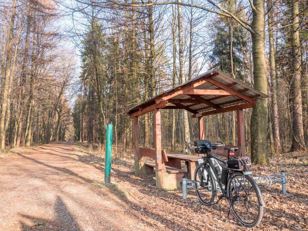 Żółty szlak rowerowy nr 259: Kaczyce - Kończyce, Las Kaczok - miejsce odpoczynkowe, fot. Damian Berłowski - roweremposlasku.pl
