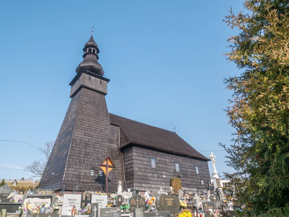 Żółty szlak rowerowy nr 259, drewniany kościół w Kończycach Wielkich, fot. Damian Berłowski - roweremposlasku.pl