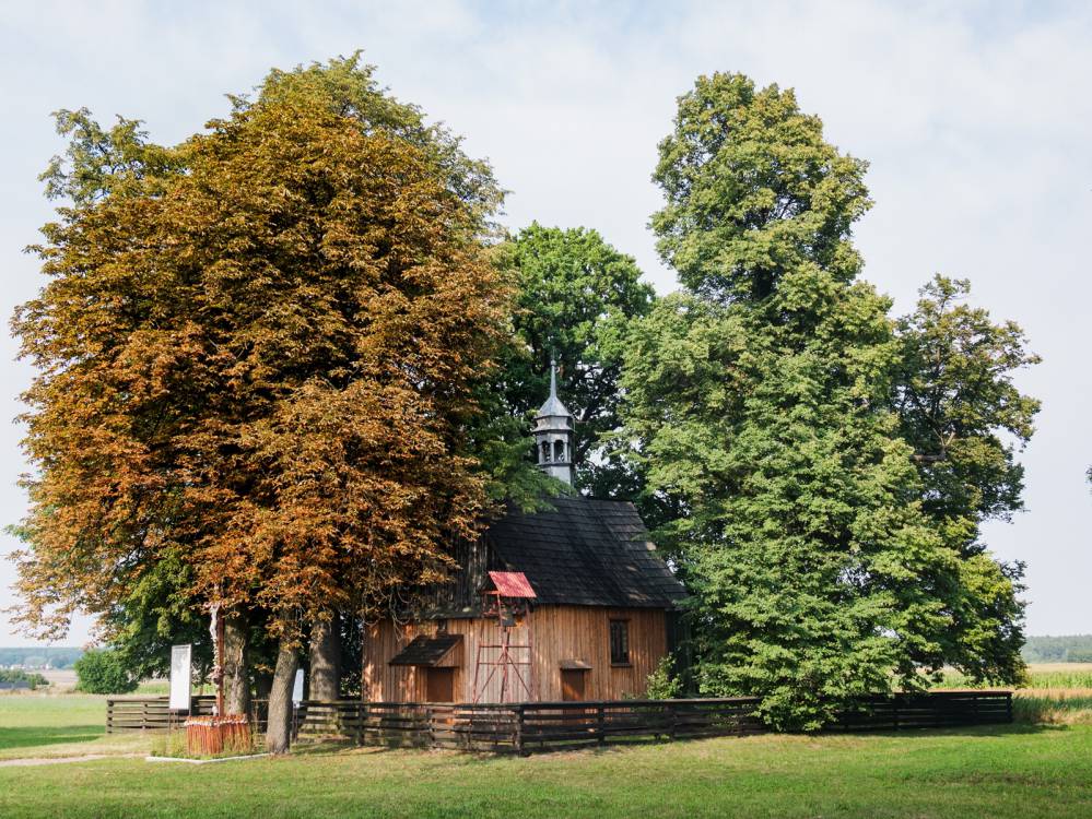 Folga na zakolu - czerwony, Mokra - drewniany kościół, Damian Berłowski - roweremposlasku.pl