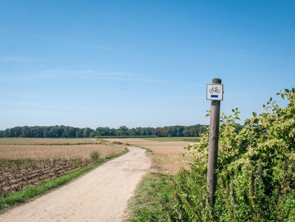 Niebieski szlak rowerowy nr 279 Strumień - Pszczyna, oznakowanie, fot. Damian Berłowski - roweremposlasku.pl