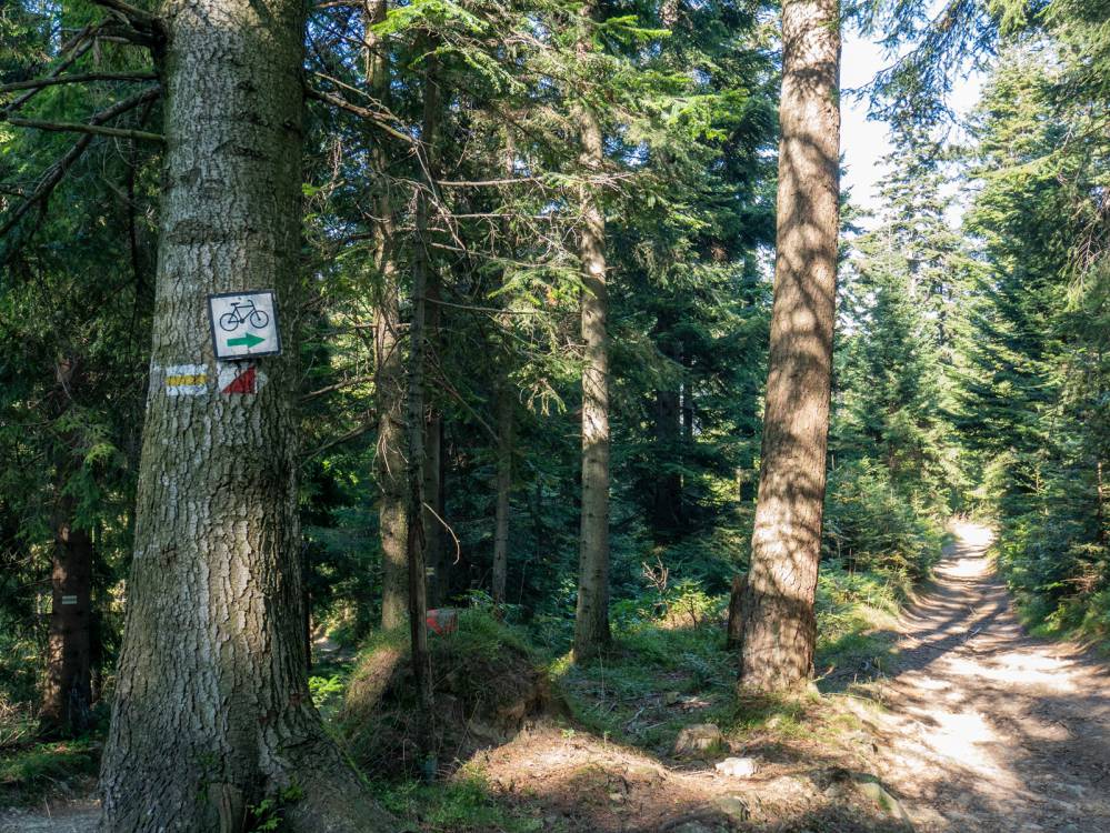 Niestety jest tylko jedno miejsce odpoczynkowe i to kawałek za pierwszym kilometrem szlaku. Brakuje takich miejsc w dalszej części, gdzie po trudnych podjazdach rowerzysta mógłby nieco się zregenerować i nacieszyć widokami.
