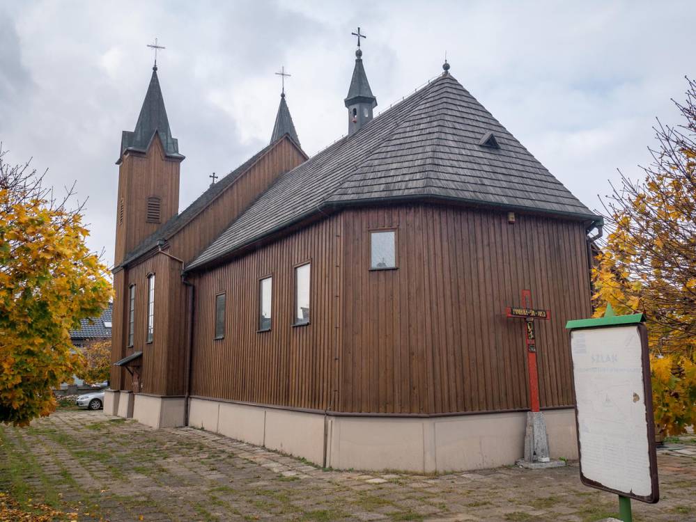 Szlak OWŚ, Bobrowniki, drewniany kościół pw. św. Wawrzyńca, fot. Damian Berłowski - roweremposlasku.pl