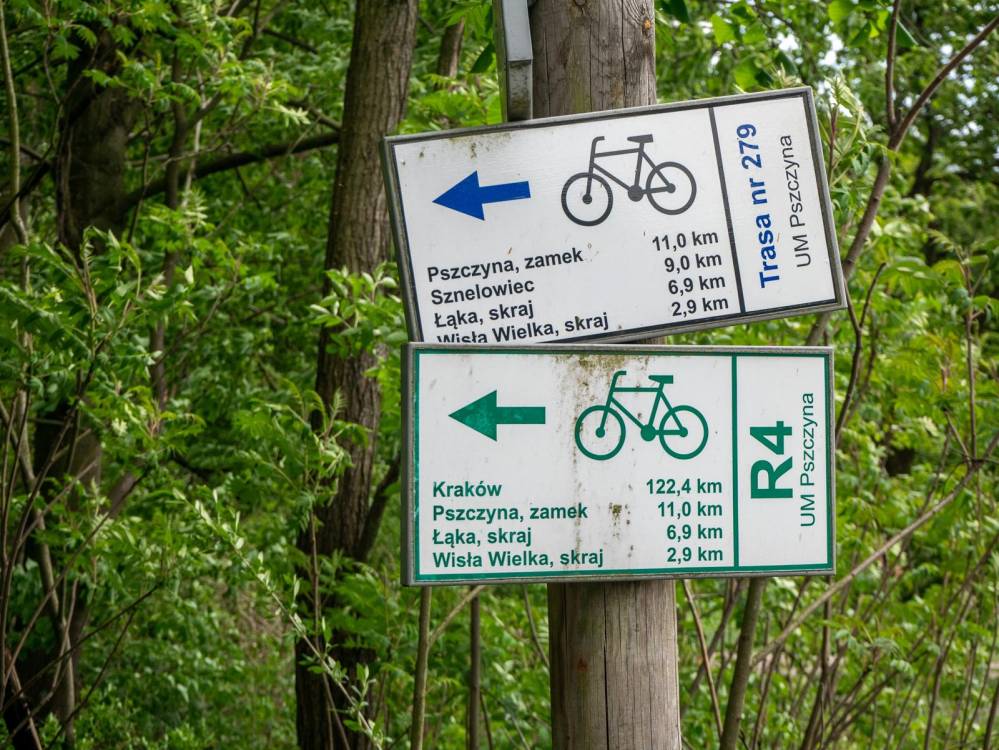 Trasa R4 oznaczona jest znakami typu R-2, czyli białymi tabliczkami z zielonym symbolem roweru i numerem trasy. Niestety oznakowanie jest niepełne – brakuje wielu znaków, tablic z kilometrażem oraz map szlaku, dlatego przed wyruszeniem warto pobrać ślad GPX.