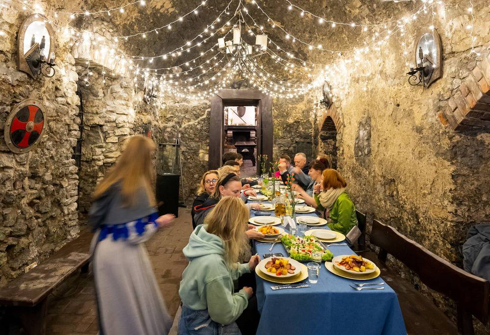 Finałem nocnego zwiedzania może być biesiada rycerska w podziemiach zamku Ogrodzieniec. Przy zachowaniu biesiadnego układu stołów, wśród surowych średniowiecznych murów uczestnicy mogą smakować tradycyjne jurajskie dania jak prażonki pieczone na żywym ogniu. Uzupełnieniem jedzenia może być degustacja znakomitego lokalnego piwa z Browaru na Jurze. Atmosfera dawnych wieków wciąż jest tu żywa, co tylko dodaje wizycie na zamku autentyczności i wzbudza wśród gości niezapomniane emocje.