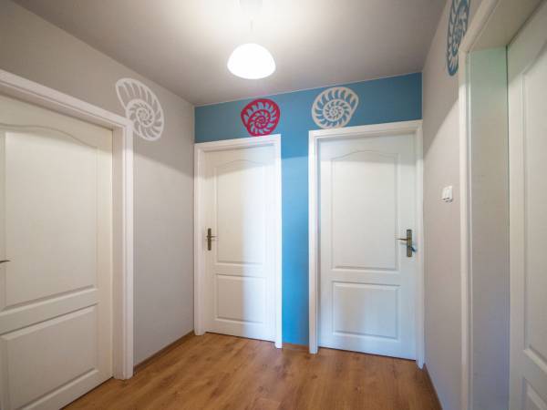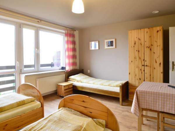 Pokoje urządzone są w domu, otoczonym rozległym podwórkiem.