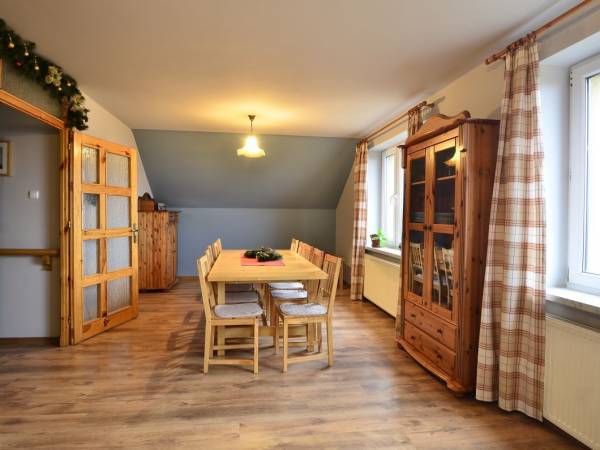 Do dyspozycji gości są cztery pokoje. Każdy z własną łazienką wewnątrz pokoju. Oddzielne wejście dla gości, kuchnia w pełni wyposażona i jadalnia niezależna od gospodarzy, plac zabaw i parking dla gości. Do dyspozycji w całym obiekcie WiFi. Sosnowe meble w pokojach stwarzają domową atmosferę. W ogrodzie altana z meblami tarasowymi i grillem.