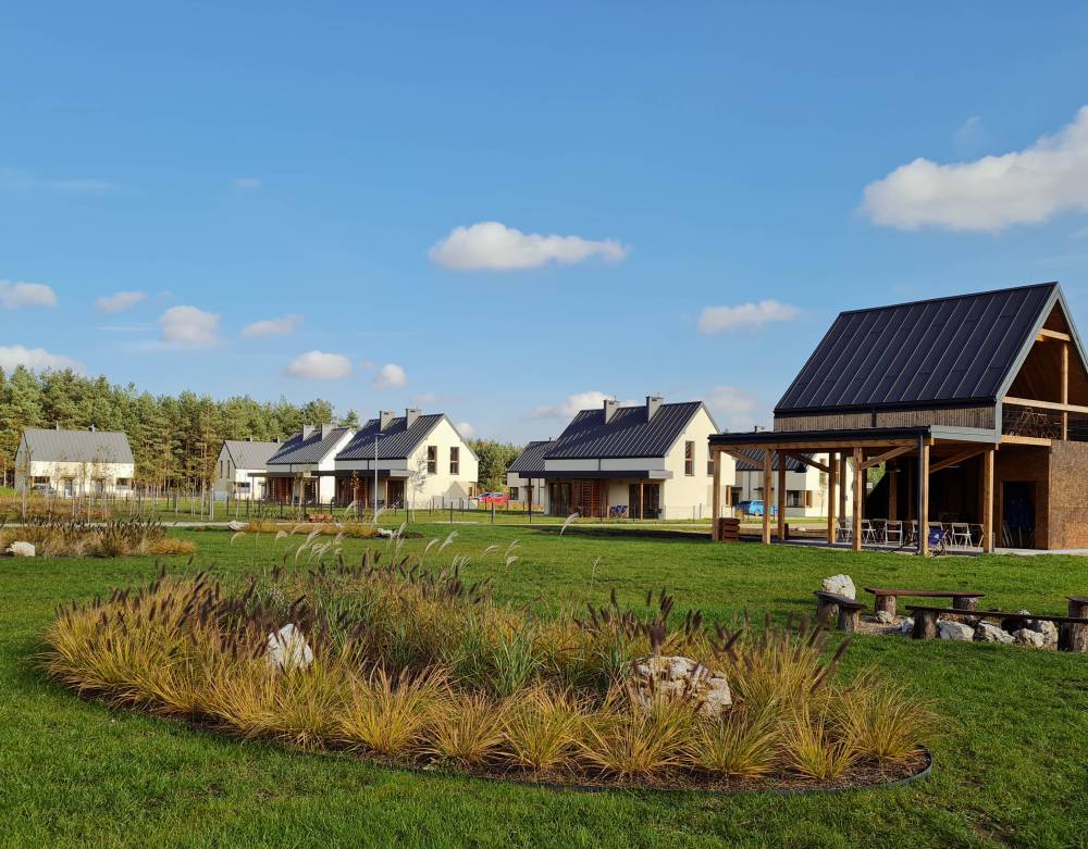 Moje Miejsce Jura to nie tylko domy z ogródkami, to również duży teren rekreacyjny, na którym Goście mogą korzystać z placu zabaw dla dzieci, boisk sportowych do gry w piłkę nożną, siatkówkę plażową oraz badmintona. Do dyspozycji jest również sezonowy basen zewnętrzny z podgrzewaną wodą oraz całoroczna sauna z balią do morsowania. Nasi Goście mogą rozpalić ognisko w jednym z miejsc do tego przygotowanych. Do ich dyspozycji jest suche drewno oraz akcesoria do pieczenia kiełbasek. W każdym z domów znajduje się grill ogrodowy. Na terenie osiedla znajduje się ogólnodostępna świetlica. Dla czworonożnych przyjaciół przygotowaliśmy psi plac zabaw - tor sprawnościowy typu agility. Można wypożyczyć rowery lub skorzystać z ogólnodostępnych hulajnóg terenowych, a w sezonie zimowym z sanek.