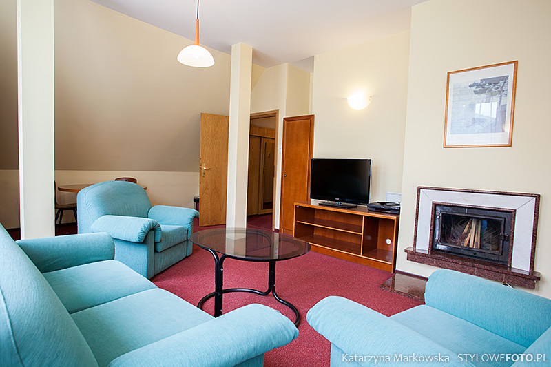 Dysponuje 110 miejscami noclegowymi w 36 komfortowo urządzonych pokojach z TV i łazienką oraz apartamentami z jacuzzi, kominkiem lub tarasem, a także 3-osobowym apartamentem przystosowanym do pobytu osób niepełnosprawnych.