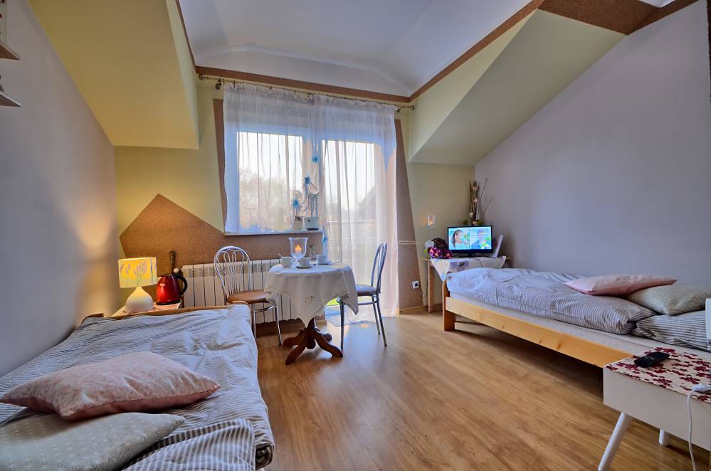 Willa Pod Aniołem dysponuje pokojami 1,2,3,4, osobowymi urządzonymi w nowoczesnym stylu, z wygodnymi meblami. Nasze pokoje wyposażone są w łazienki z prysznicem, telewizor a niektóre z nich posiadają balkon. Dla tych z Państwa, którzy preferują przyrządzanie posiłków we własnym zakresie udostępniamy w pełni wyposażony aneks kuchenny. Dom otoczony jest dużym ogrodem, w którym do Państwa dyspozycji oddajemy altankę z grillem.